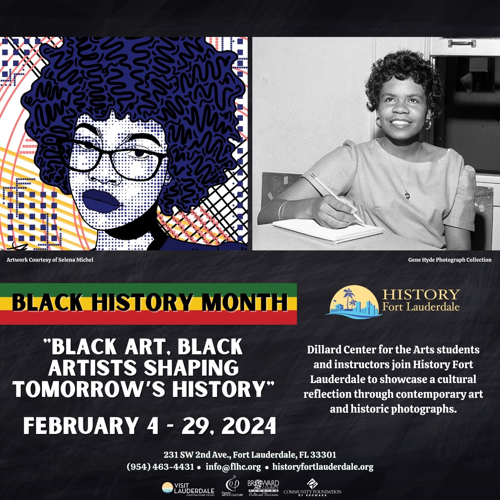 “Black Art, Black Artists Shaping Tomorrow’s History,” a new fine art exhibit, will anchor History Fort Lauderdale’s Black History Month showcase. An annual homage, this new installment will feature works for show and sale from Dillard Center for the Arts’ Advanced Placement (AP) students and instructors, from February 4 – 29. Curated by Dillard instructor Celestin Joseph, the exhibit of photography and studio art features creative re-imaginings and reflections of historical Black leaders, community icons, and hometown heroes. A meet and greet with the artists will take place on Sunday, February 4, at 1 p.m., at the New River Inn Museum of History building on History Fort Lauderdale’s campus.