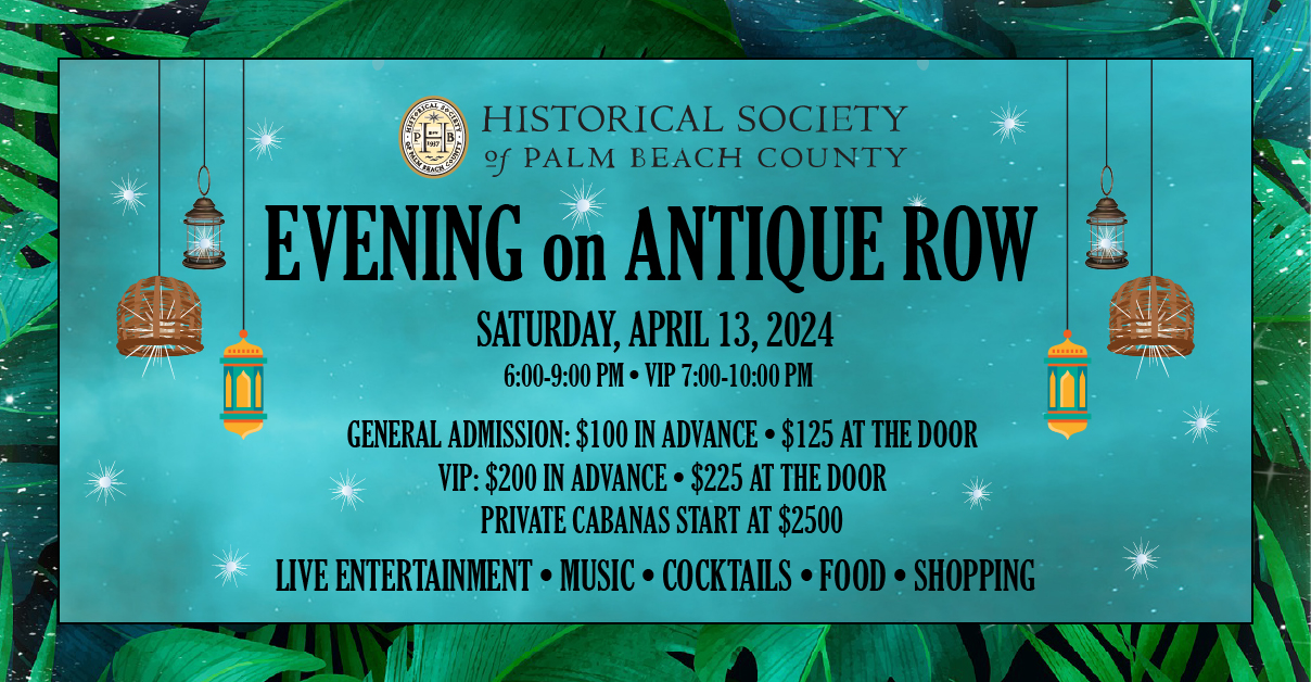 Evening on Antique Row™ is a signature fundraising event of the Young Friends of the Historical Society of Palm Beach County in support of its education programming is back! It is presented in partnership with the members of the Antique Row Association and other merchants along South Dixie Highway, West Palm Beach.