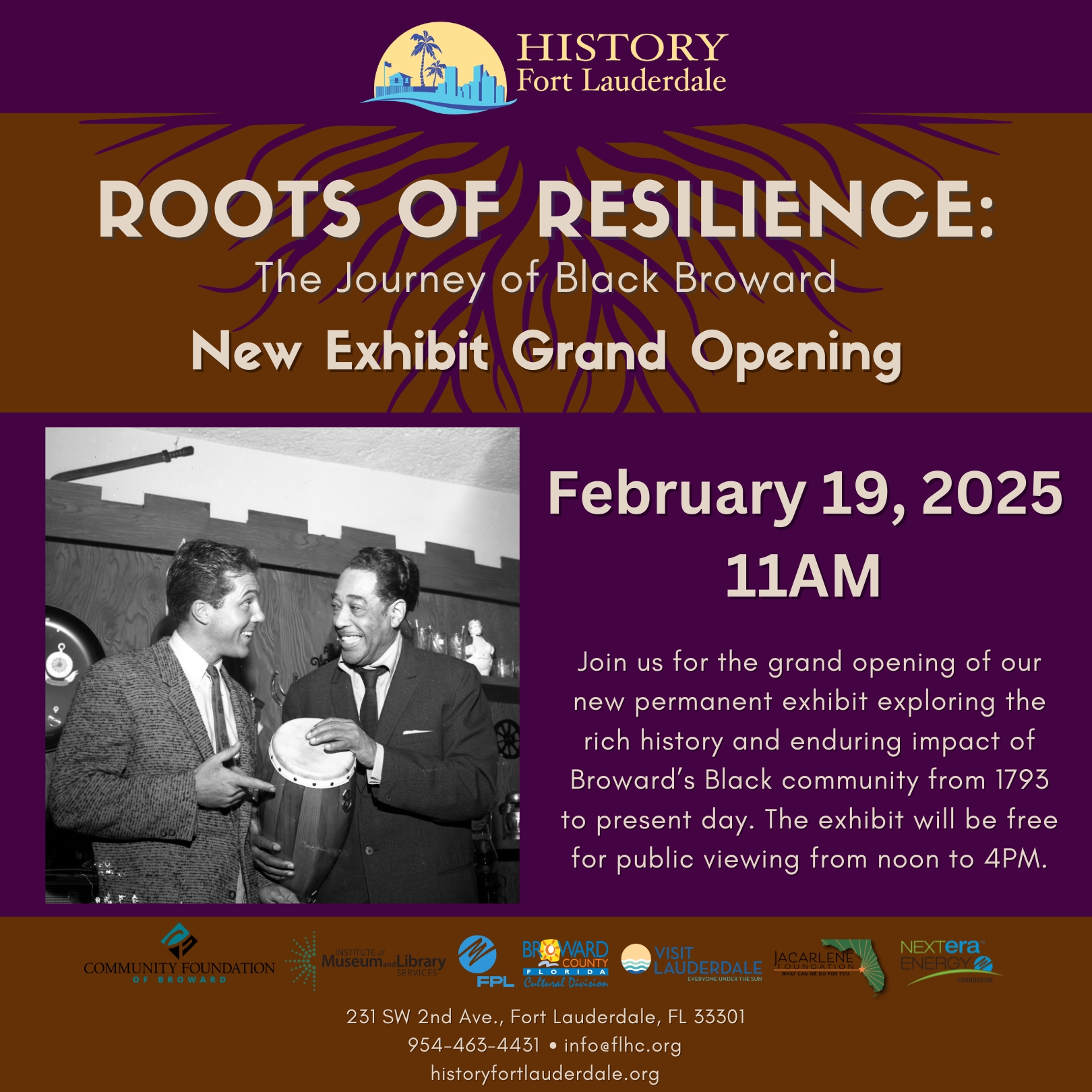 Support for History Fort Lauderdale’s “Roots of Resilience: The Journey of Black Broward” has been provided by the Community Impact Fund at the Community Foundation of Broward. Additional funding has been provided by the Institute of Museum and Library Services (IMLS), NextEra Energy Foundation, Florida Power & Light Company’s charitable arm, Jacarlene Foundation, the Broward County Board of County Commissioners as recommended by the Broward County Cultural Council and Visit Lauderdale.