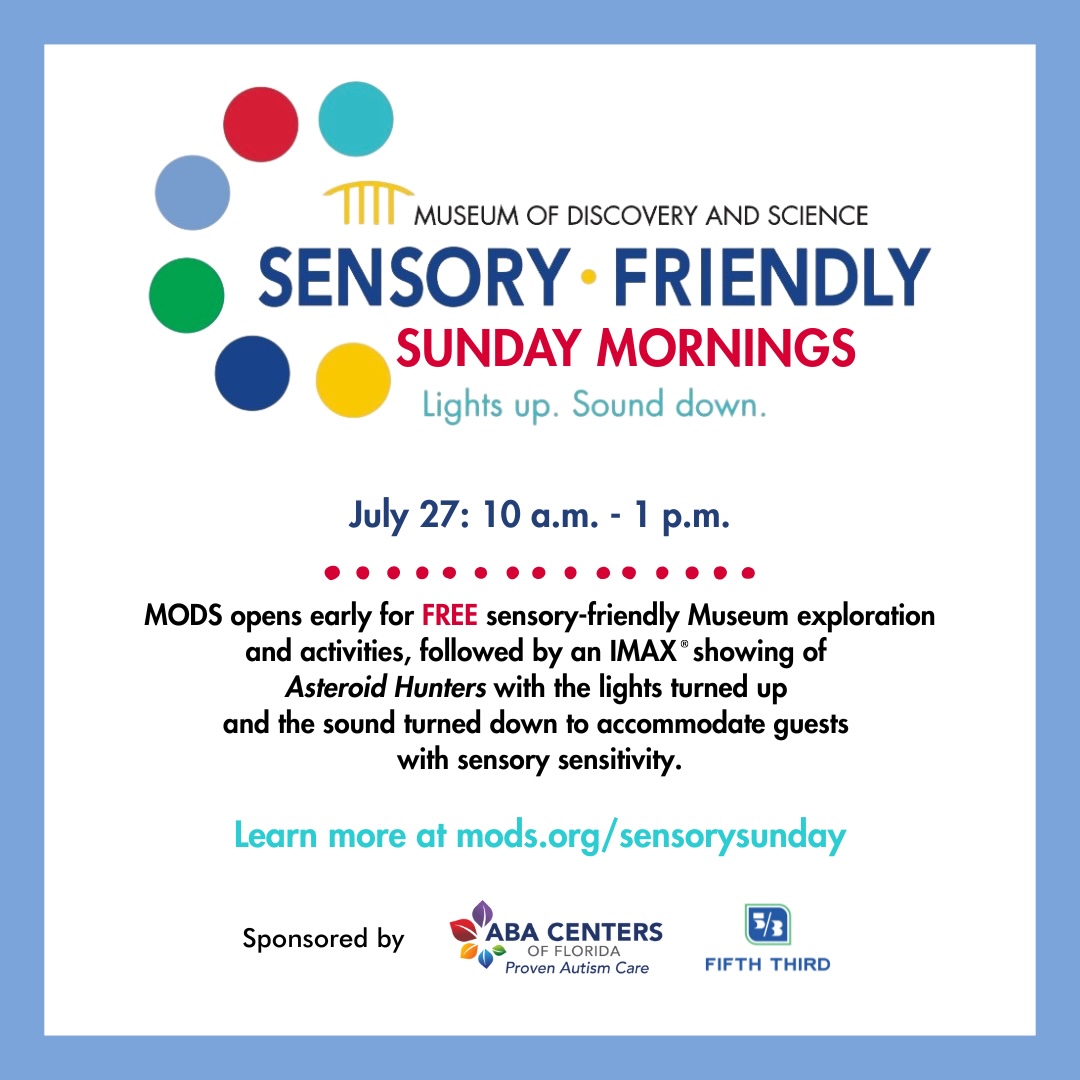 Sensory-Friendly Sundays are sponsored by Fifth Third Bank and ABA Centers of Florida.